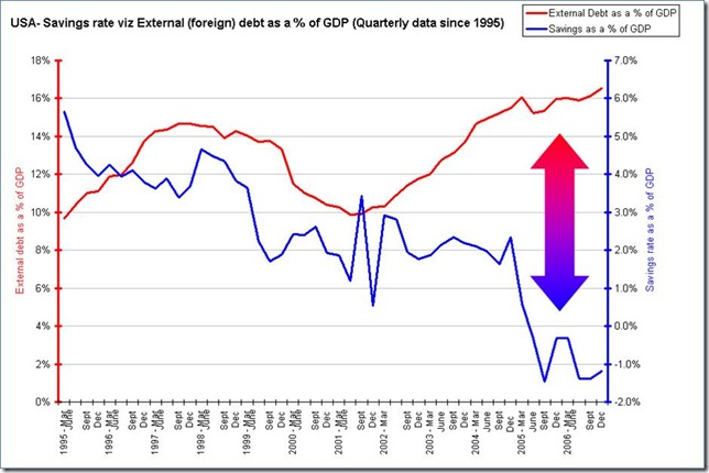 La tasa de ahorro de los hogares norteamericanos estaba en niveles que no se veían desde la Gran Depresión, y se había reducido desde un 12.2% del ingreso disponible de los hogares el IV Trimestre de 1980 a 1.1% en el IV Trimestre de 2006.